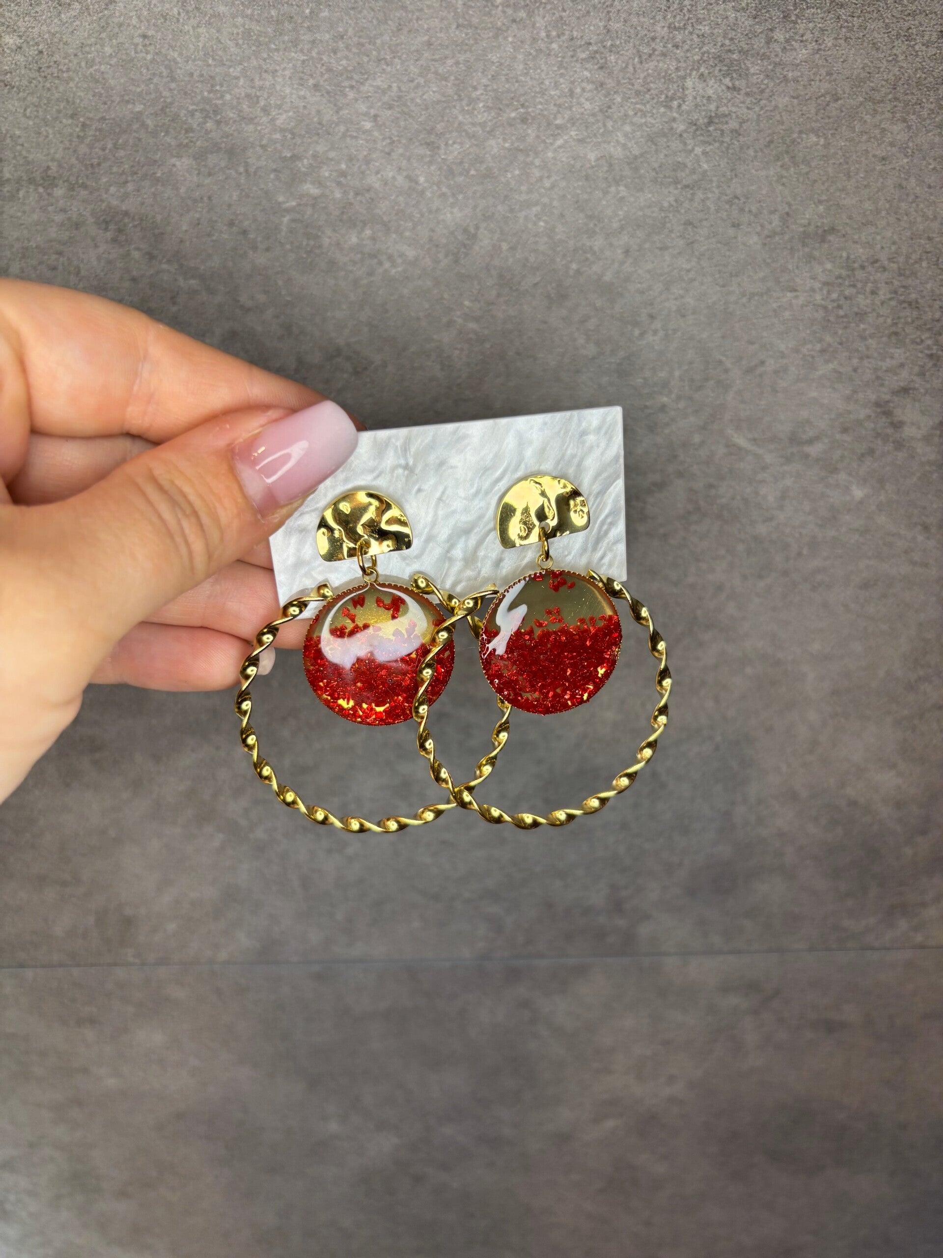 Boucles d'Oreilles Dorées Torsadées Avec Cristaux Rouges